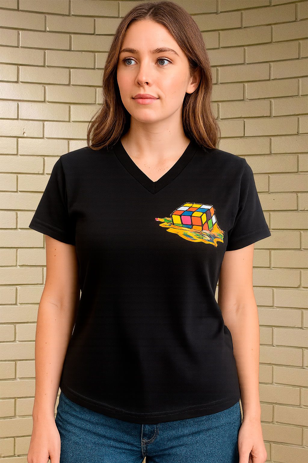 Desafía la lógica con nuestra camiseta estampada cubo surrealista mujer, una prenda para los que piensan fuera de la caja… y luego la derriten. Este diseño es un homenaje ingenioso a dos mundos: el desafío mental del icónico Cubo de Rubik y el arte onírico del surrealismo. El vibrante diseño de un cubo derritiéndose es un deleite visual. También es un símbolo de creatividad sin límites.
