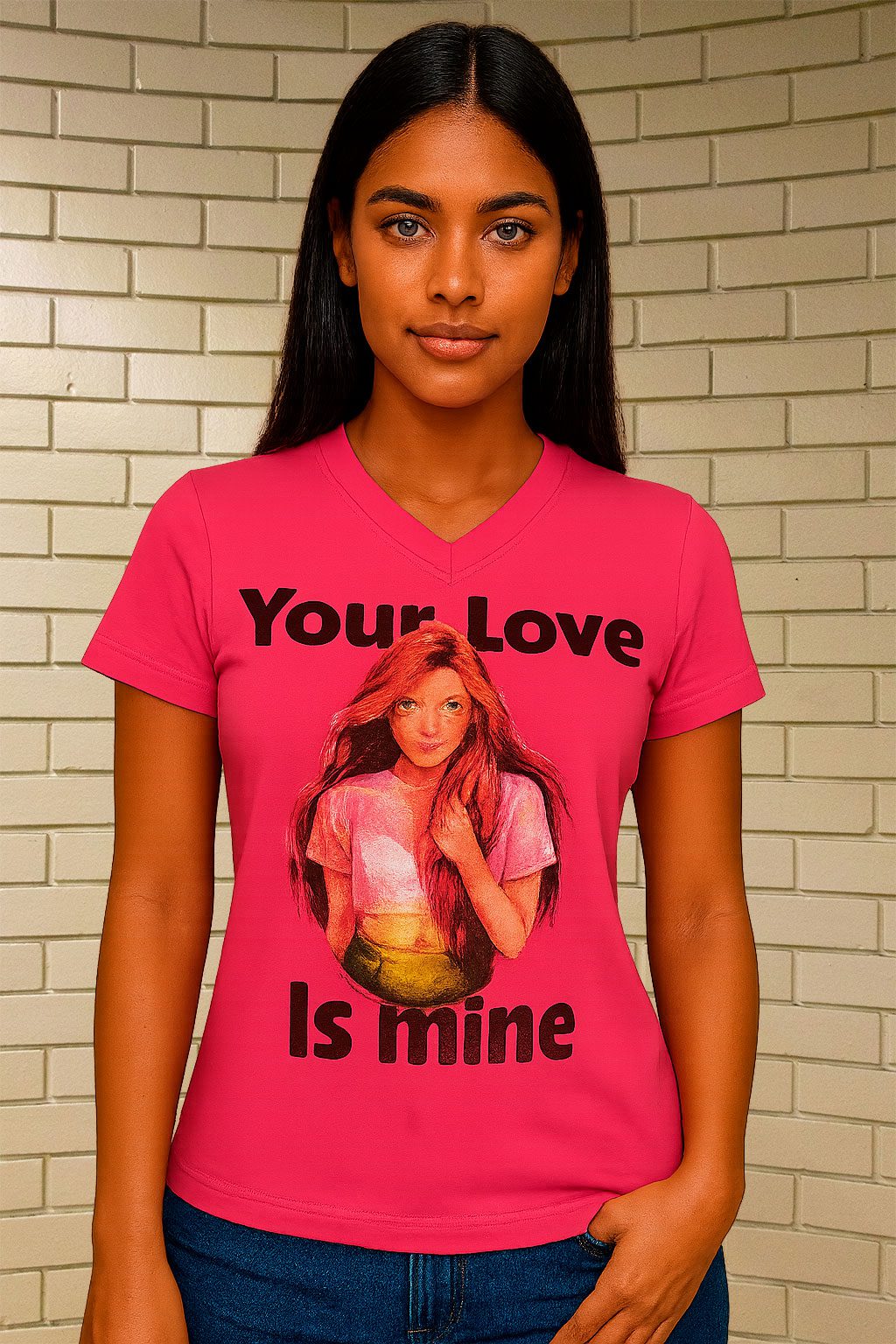 Diseño: Estampado llamativo con la frase “Your Love Is Mine” y un gráfico de inspiración retro-pop.