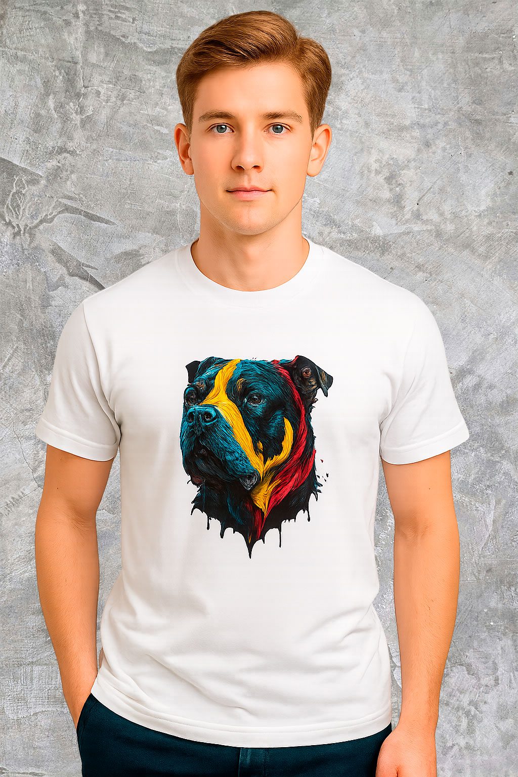 Lleva a tu mejor amigo contigo de la forma más estilosa. Nuestra camiseta estampada perro hombre está diseñada para los amantes de los animales que buscan expresar su personalidad a través de la moda. Confeccionada en algodón de alta calidad, esta prenda no solo es cómoda, sino también el lienzo perfecto para esta vibrante obra de arte pop.