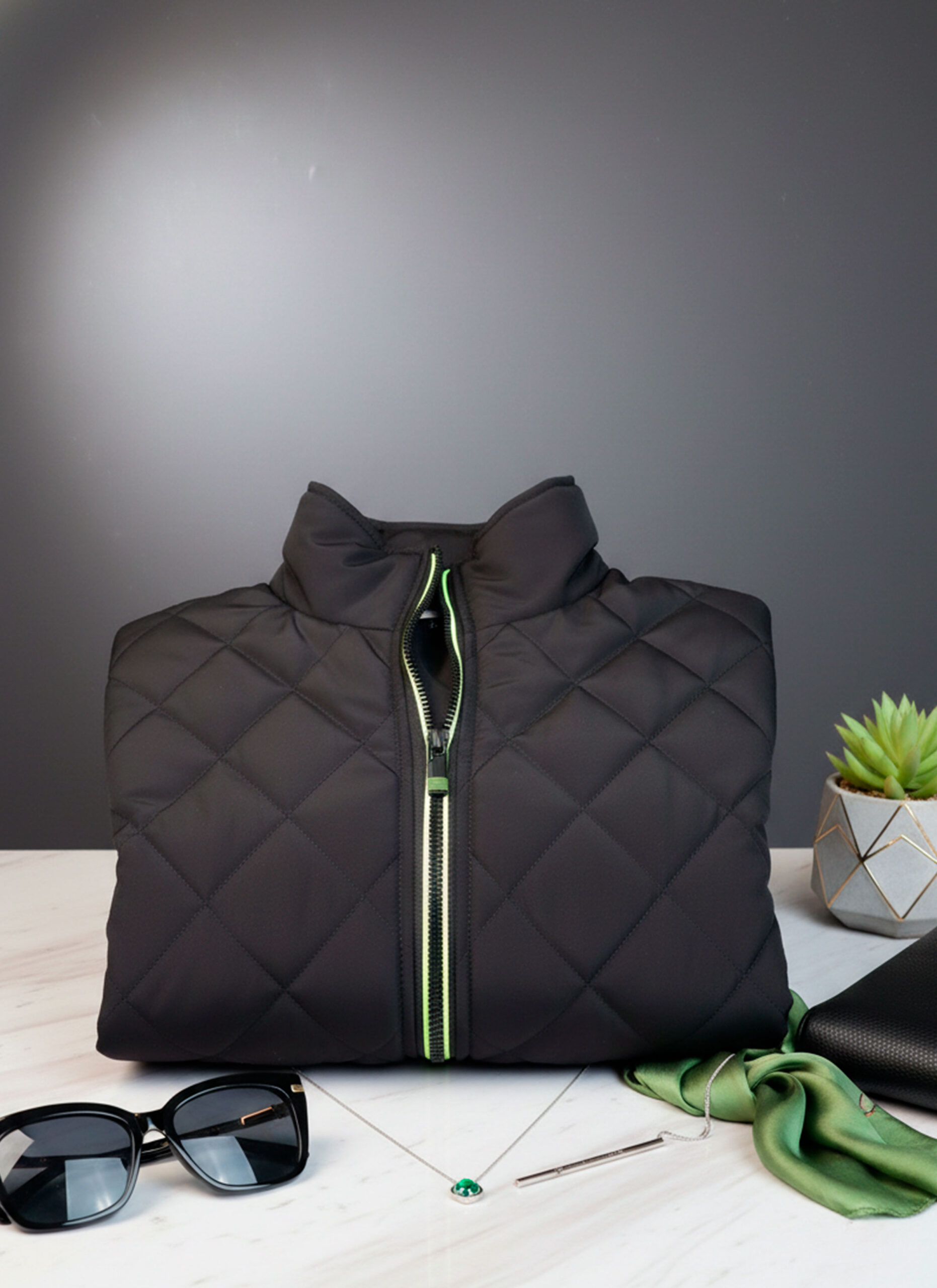 • Calidez y Confort Acolchado: Su diseño acolchado no solo aporta una textura sofisticada y un estilo atemporal, sino que también proporciona una capa de abrigo ligera y efectiva, ideal para los días más frescos.